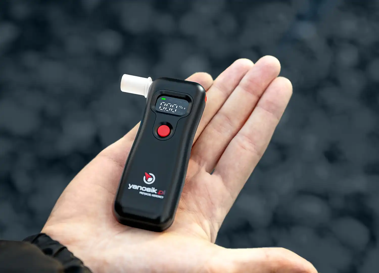 YANO 200 waży zaledwie 50 g (z bateriami) i ma wymiary 100 × 38 × 18 mm, co czyni go jednym z najmniejszych alkomatów elektrochemicznych na rynku.